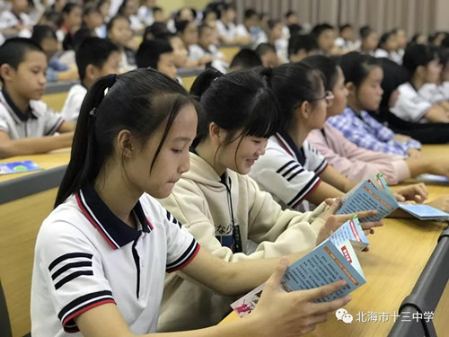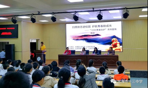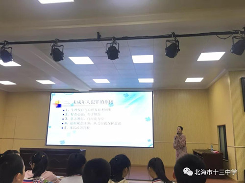 为进一步营造扫黑除恶专项斗争宣传氛围,切实加强校园安全管理水平,提升师生自我安全防范能力和法律意识,打造平安和谐校园,11月14日下午,北海市司法局、北海市律师协会、北海市团市委、北海市律师协会未成年人专业保护委员会联合北海市第十三中学开展了“扫黑除恶进校园 护航青春助成长”专题讲座。活动邀请到北海市律师协会未成年人专业保护委员会成员庞显婷、广西海城律师事务所徐佳两位律师为北海市第十三中学师生上了一堂生动形象的法治教育课。