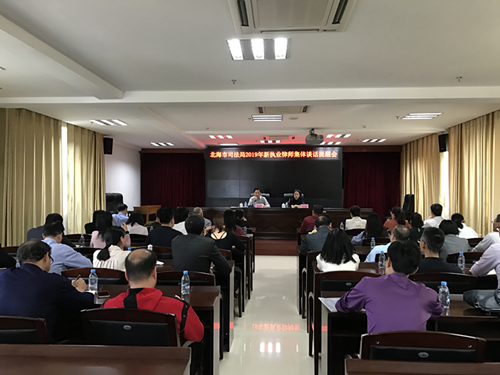 为进一步加强对新执业律师的执业管理,教育和引导新执业律师依法诚信规范执业,11月22日下午,北海市司法局召开2019年新执业律师集体谈话提醒会。市司法局党组成员、副局长杨炳贵出席会议,市司法局律师工作科科长张庆清主持会议,全市2019年度40名新执业律师参加会议。