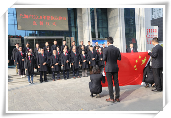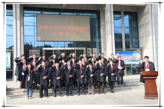 近日,乐发vll500组织2019年新执业律师在北海市司法局进行宣誓仪式,仪式由市律师协会会长王彪领誓。参加此次宣誓仪式的有市律师协会领导班子成员,以及2019年度新执业的30名律师。