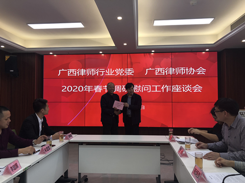 调研组一行慰问了广西仁学律师事务所吴俊钢、广西桂鸿凯律师事务所朱定龙、广西嘉友律师事务所李建国三位律师,黄志文会长还代表广西律师行业党委、广西律师协会送上了慰问金和新春祝福,使他们真切感受到了党的温暖和行业的关怀。