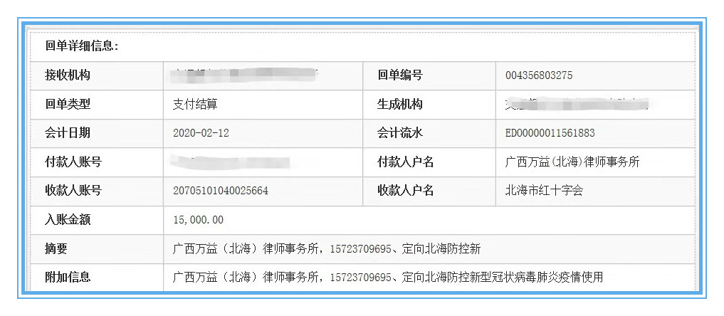 2月12日,广西万益(北海)律师事务所向北海市红十字会捐款人民币1.5万元,助力打赢疫情防控阻击战。面对疫情,广西万益(北海)律师事务所积极行动,一是主动为政府部门疫情防控工作建言献策,配合政府的疫情排查工作;二是为顾问单位、中小企业及群众就受关注的法律问题提供法律咨询,推送相关法律资讯,做好法律服务和普法宣传;三是主动为疫情防控工作捐款,为北海市打赢疫情阻击战提供力所能及的帮助。