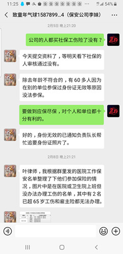 广西还珠律师事务所叶源扬副主任听闻顾问单位广西海防保安服务有限公司有近800名保安在一线执勤,特别是有120名保安被派遣到定点收治确诊新冠肺炎患者的北海市第四人民医院及其他医疗单位执勤,考虑到保安被传染的风险较大,通过远程办公的方式马上建议完善相关人员社保,部分保安因其他原因无法购买社保的,则建议保安公司投保雇主险或医疗保险,做到应保尽保,防范企业用工风险,确保一线保安人员合法权益得到有效保障。