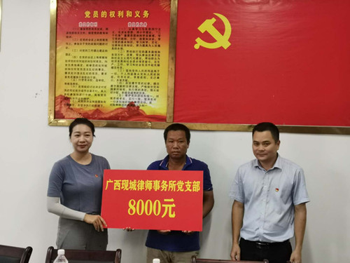 炎炎夏日中,银海区司法局、广西现城律师事务所党支部联合开展支部党日活动,寄托了党对困难群众的牵挂,体现了党心为民。此次爱心捐赠,将助力脱贫户姚来照顺利建房,姚来照开始重拾信心,脸上绽放出了灿烂的笑容。