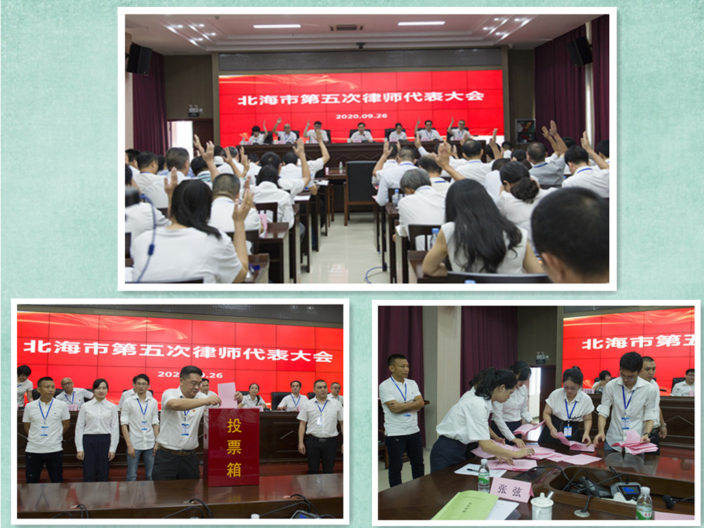 2020年9月26日上午,北海市第五次律师代表大会顺利召开。北海市政府副市长、市公安局局长李泽进出席大会并做讲话,广西律师协会副会长韦良钢到会致辞,北海市司法局党组书记陈劲,北海市司法局局长潘娟,北海市司法局党组成员、副局长、市律师行业党委书记杨炳贵,北海市司法局党组成员、政治部主任黄家玲等领导出席大会。全市律师行业85名律师代表、4名特邀代表及第四届乐发vll500会长王彪、副会长吴文钦、谢宗宝、李春贵、李满穗等参加了大会。