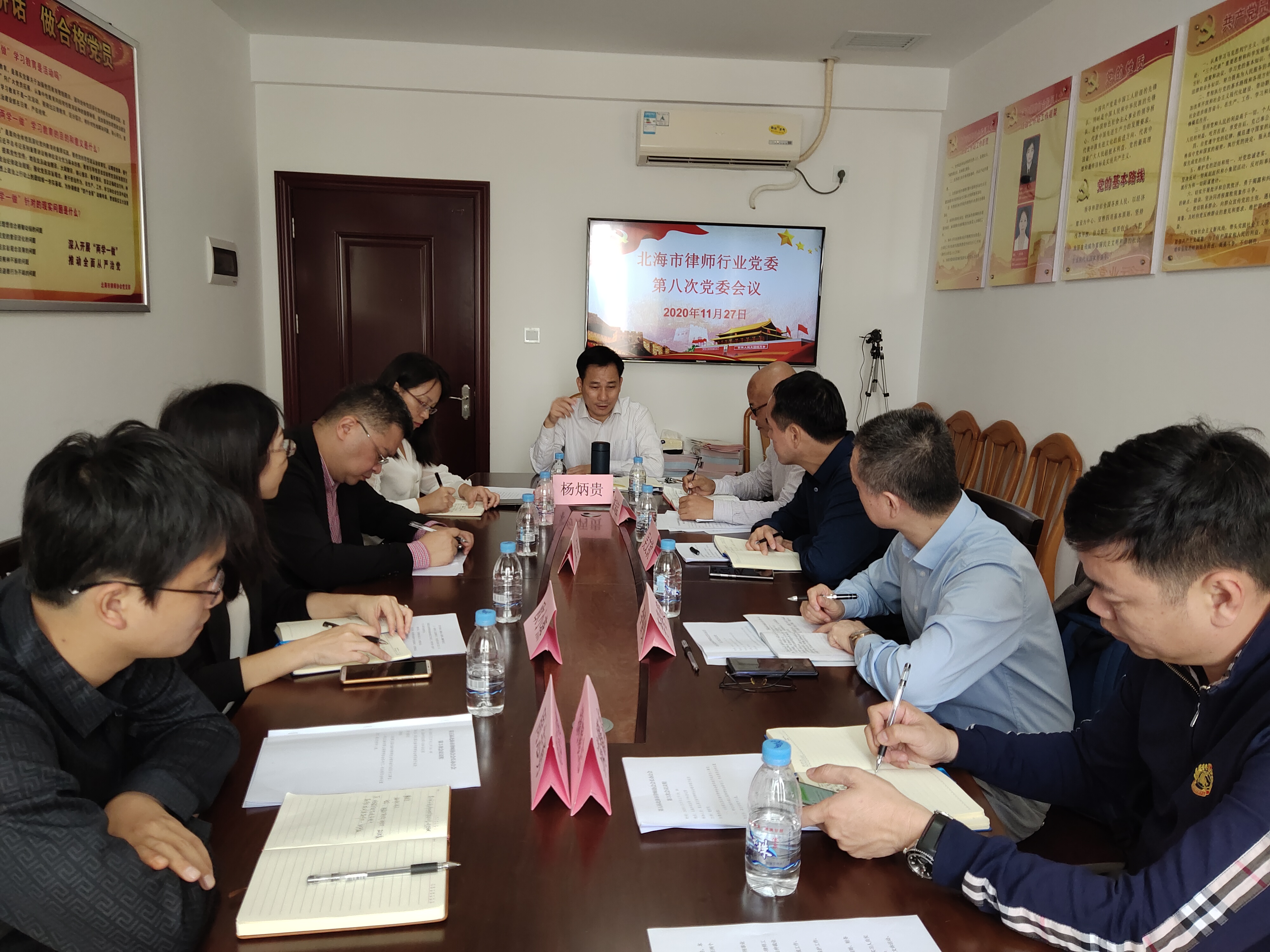 11月27日上午,北海市律师行业党委召开第八次党委(扩大)会议,传达学习党的十九届五中全会精神和中央全面依法治国工作会议精神,学习领会习近平法治思想,研究下一步加强北海律师行业党的建设和律师行业建设工作。北海市司法局副局长、市律师行业党委书记杨炳贵主持会议并讲话,北海市律师行业党委班子成员、新一届律师协会领导班子成员参加了学习。