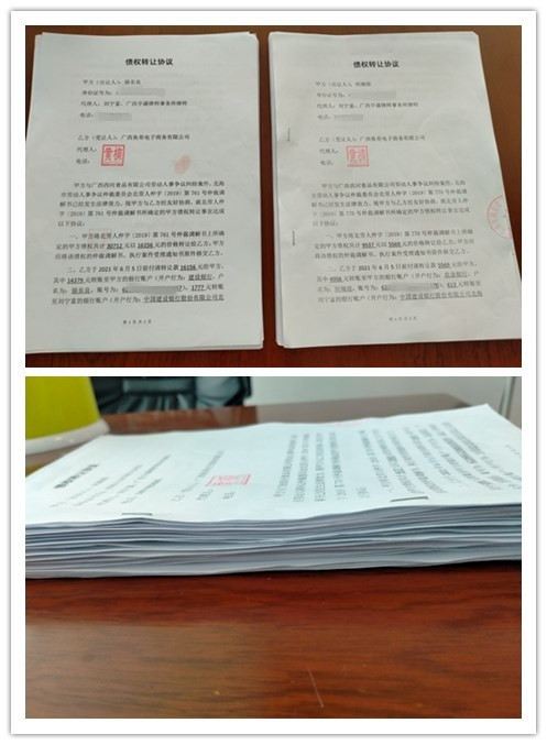 5月27日,广西现城律师事务所与广西金海盈食品有限公司的董事长陈忠球先生联系,表明我市司法机关对工人工资问题的关注和当前维护社会稳定的大局需要。陈董事长深明大义当即以企业家必须回报国家、回报社会的态度决定协助解决67名工人工资问题。此后经该所律师与67名工人代理律师多方沟通最终达成由广西金海盈食品有限公司收购67名工人债权的协议。6月3日,该公司分别与67名工人签订了债权转让协议,6月7日,该公司已全部支付了协议的对价。该矛盾纠纷最终得到了完满化解。