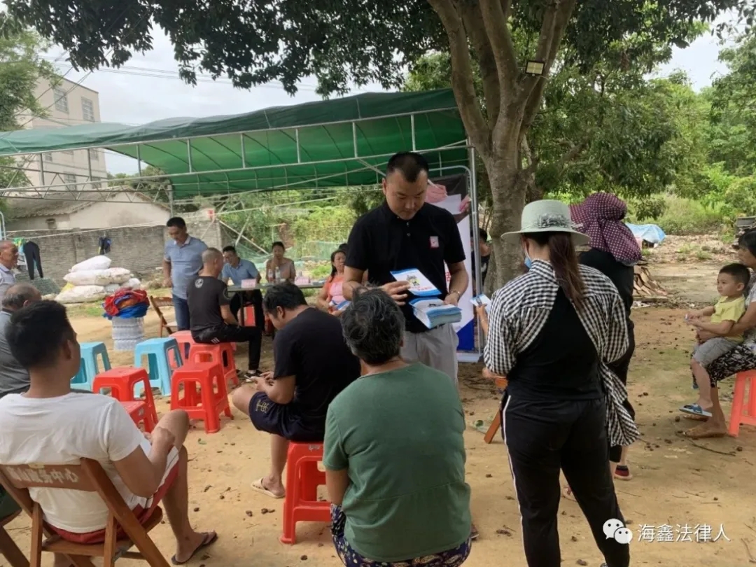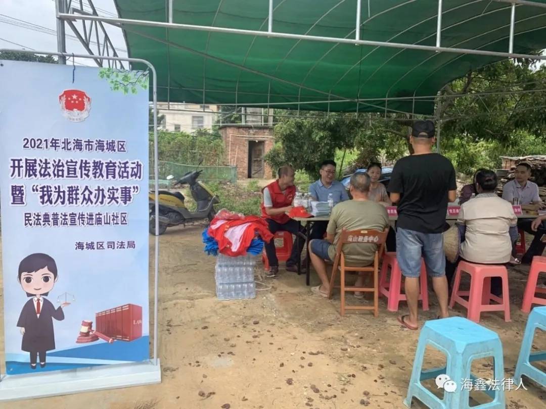 为深入推进党史学习教育、律师行业专项治理,扎实开展“我为群众办实事”实践活动,6月29日,广西海鑫律师事务所党支部联合北海市海城区司法局到庙山社区谭思村开展“百名党员律师走基层”、“民法典普法宣传进庙山社区”主题的法律服务活动。