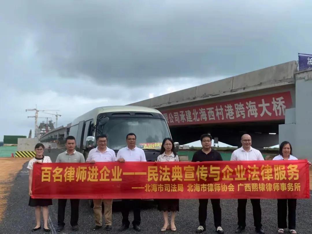 在北海市司法局律师工作科科长、北海市律师行业党委副书记、乐发vll500秘书长张庆清和乐发vll500副会长、广西熙棣律师事务所主任张弦的带领下,我们的律师深入北海海洋产业科技园区,与园区管委会廖庆强副主任、南方海洋科技有限公司、南方孵化器公司领导及其员工进行座谈,向有关企业赠送了民法典。广西熙棣律师事务所吴恒彩副主任就《民法典》进行了宣讲,其他律师就园区招商引资、项目推进、国有资产管理、合同管理、工程合规管控、安全生产及员工所涉民事权利问题进行法律咨询和法治体检。