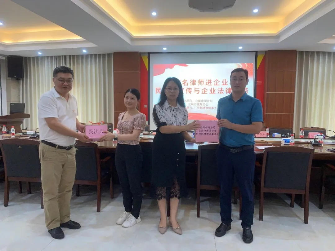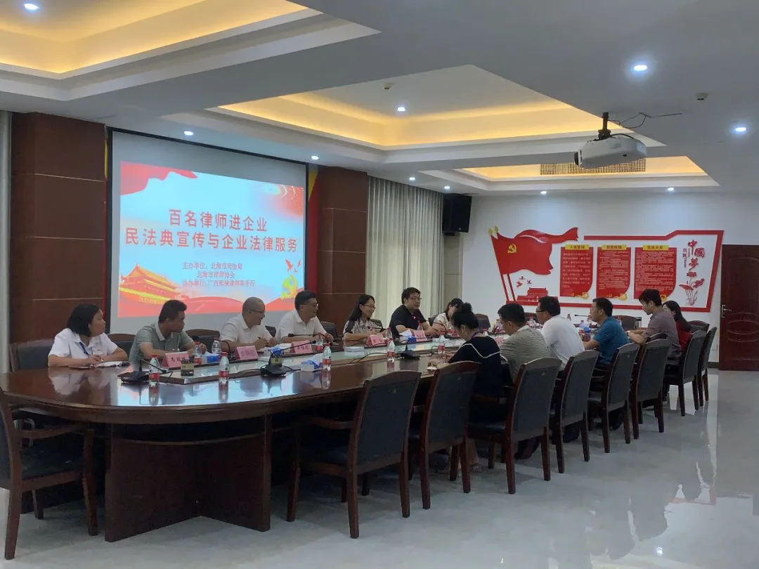 为贯彻落实习近平总书记在庆祝建党一百周年大会上的讲话精神,北海市律师行业结合法律服务工作,广泛开展“我为群众办实事”实践活动,推动党史学习教育和突出问题专项治理“回头看”走深走实。7月22日下午,北海市司法局、乐发vll500组织广西熙棣律师事务所律师赴北海海洋产业科技园区开展“百名律师进企业-民法典宣传与企业法律服务”活动。
