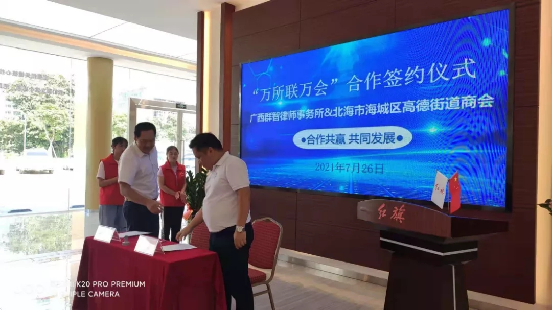 7月26日下午,北海市海城区工商联联合北海市海城区司法局、北海市海城区高德街道商会共同主办,广西群智律师事务所协办,北海市海城区“万所联万会”暨法律进商会活动。区政协副主席、工商联主席叶贵林、区司法局局长吴家运、区工商联党组书记曹汝琦、区工商联执委沈如珠、群智所主任梁春雷、区高德街道商会会长周六福出席了本次活动。乐发vll500第二联合党支部书记陶心进及蔡琼瑶、黄世通等律师受邀参加了本次活动。
