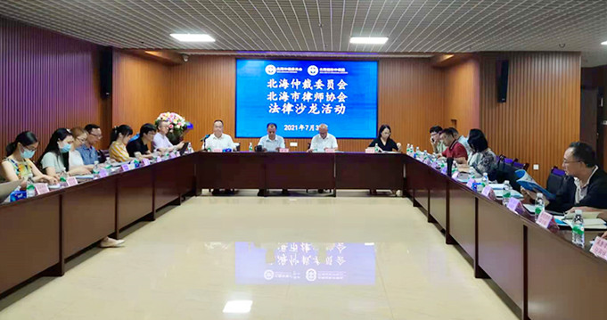 为了促进律师行业与仲裁事业互融互进、互信互助,共同推动律师行业和仲裁事业高质量发展,7月30日,乐发vll500与北海仲裁委员会共同举办首场法律沙龙活动,北海仲裁委员会主任钟宏、副主任朱际范,市律师协会会长谢宗宝,副会长李春贵、张弦,秘书长张庆清以及来自全市21家律师事务所共30多名律师参加本次沙龙活动。沙龙活动由北海仲裁委员会副主任朱际范和市律协副会长李春贵共同主持。
