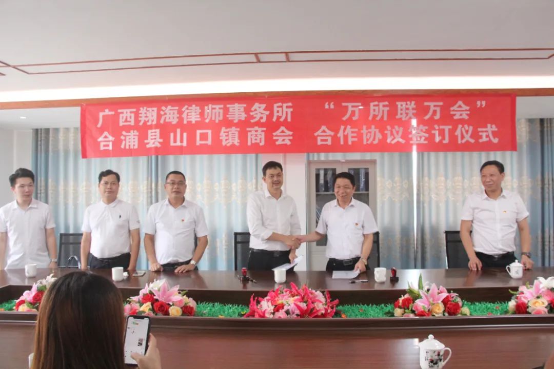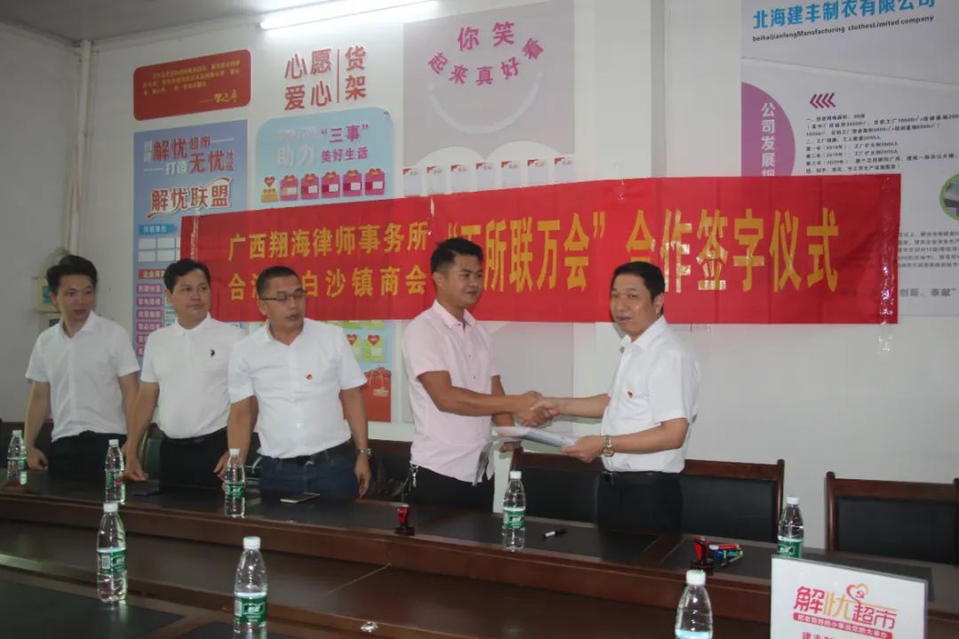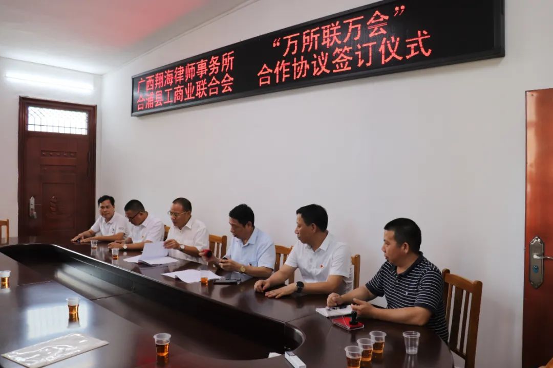 2021年8月7日,广西翔海律师事务所与合浦县白沙镇商会会员进行座谈,并举行“万所联万会”合作协议签字仪式。