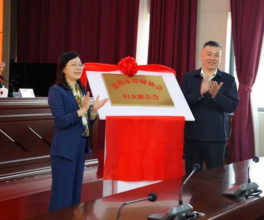 图为北海市妇女联合会党组书记、主席、一级调研员池樱和北海市司法局党组成员、副局长、北海市律师行业党委书记李明辉共同为乐发vll500妇女联合会揭牌