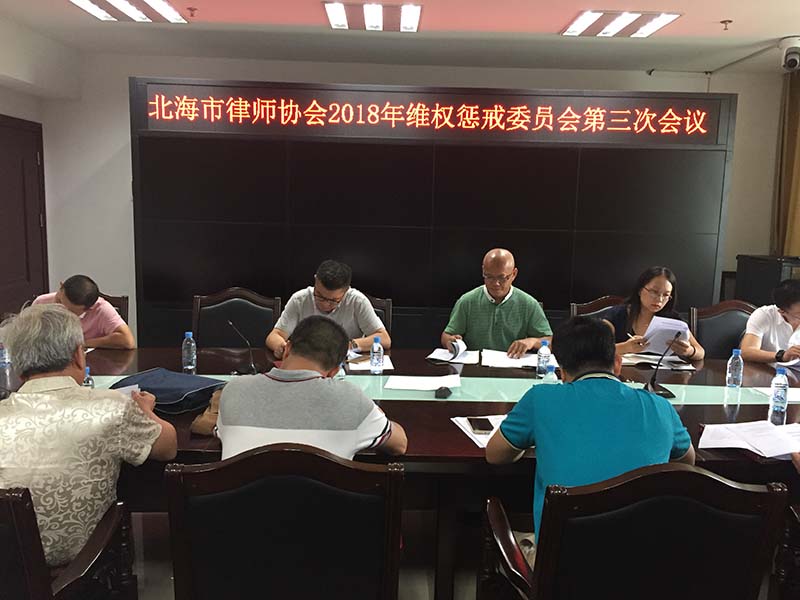 会上,市律协副会长谢宗宝首先向大家介绍了新加入维权惩戒委员会的5位律师委员,同时强调了工作纪律,他说:新组建的维权、惩戒委员会委员基本涵盖了合浦县、海城区、银海区律师所的律师,大大充实了律协维权惩戒工作的力量,为加强律师协会队伍建设,提高律师执业水平和综合素质提供了强有力保障。