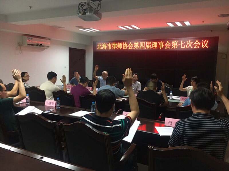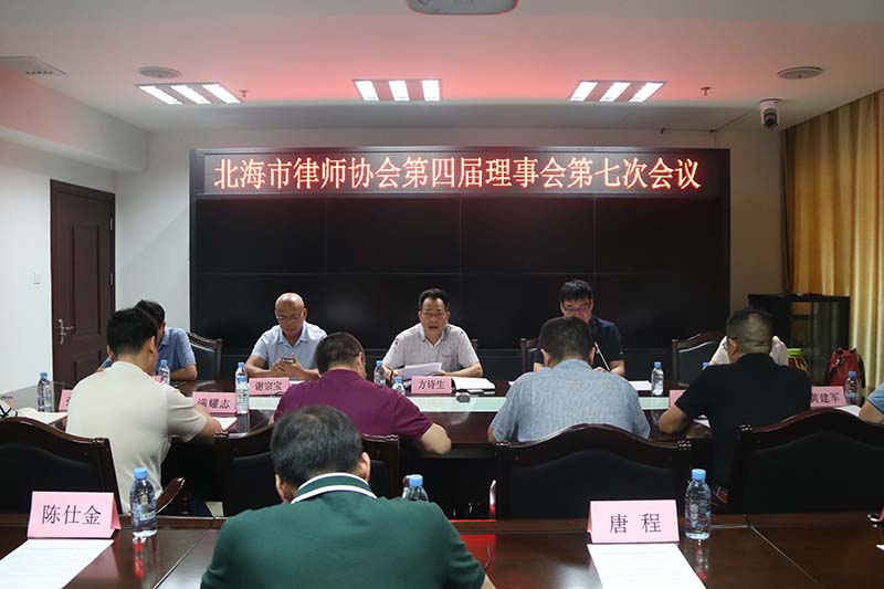 7月27日下午,乐发vll500第四届理事会第七次会议在北海市司法局701会议召开,市司法局副局长方诗生,市律师协会会长王彪等14名理事及秘书长张庆清参加了此次理事会。会议由市律师协会会长王彪主持。