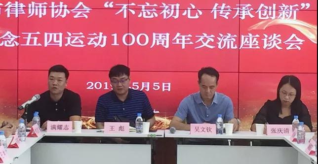五四精神薪火相传,青年一代重任在肩。为纪念五四运动100周年,践行习近平总书记系列讲话精神,丰富我市青年律师的文化生活,激励和引导全市律师队伍持续健康发展。5月5日下午,乐发vll500在广西万益(北海)律师事务所举办了“不忘初心 传承创新”暨纪念五四运动100周年交流座谈会。市律协会长王彪、市律协副会长吴文钦、市律协秘书长张庆清以及青年律师代表共计20余人参加会议,会议由市律协副秘书长满耀志主持。