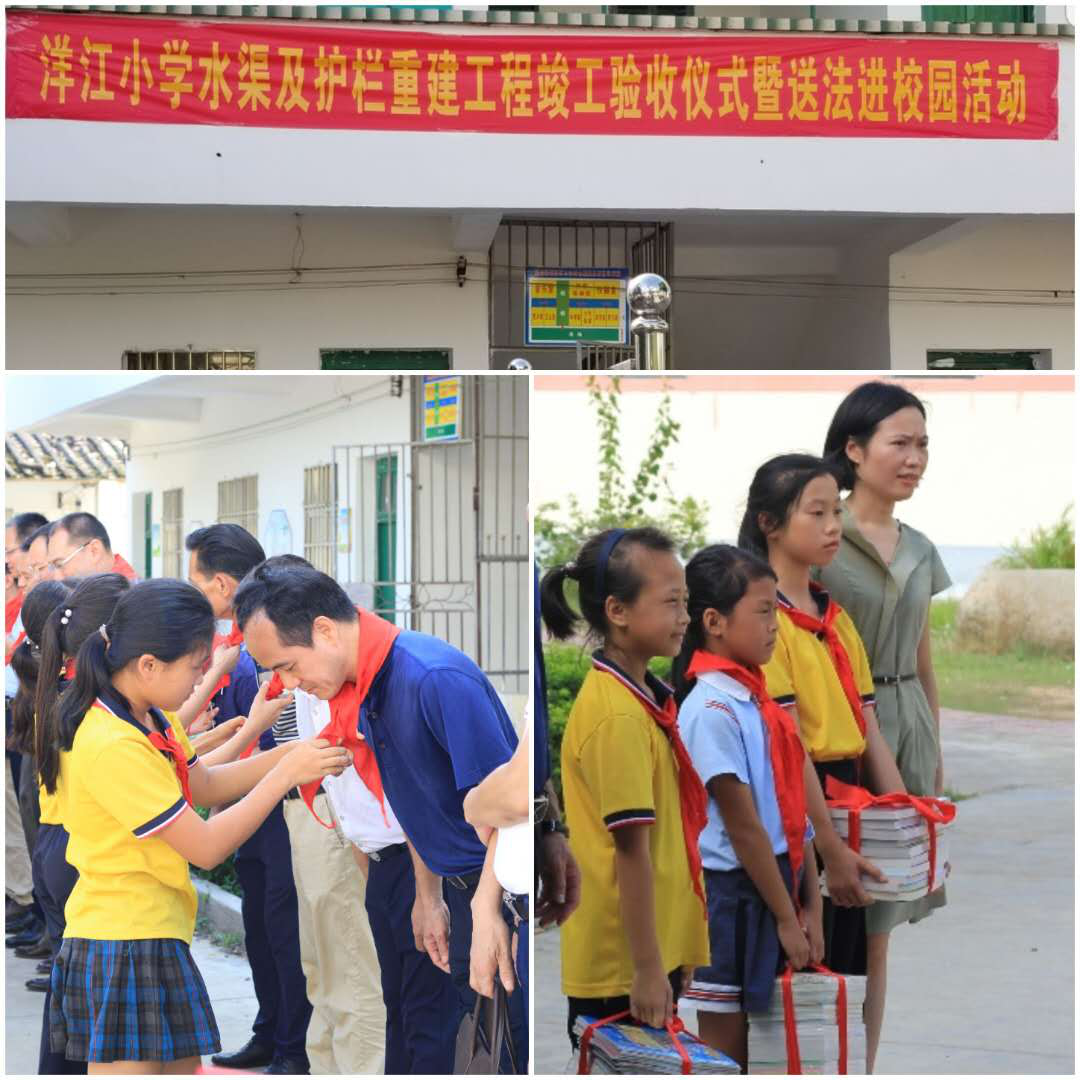 2019年6月4日,“洋江小学水渠及护栏重建工程竣工仪式暨送法进校园活动”在合浦县星岛湖镇洋江小学举行,北海市委统战部、市教育局,合浦县委统战部、县教育局、岛湖镇党委,以及北海福建商会、北海市新的社会阶层人士联谊会、乐发vll500等单位的领导出席了活动仪式。