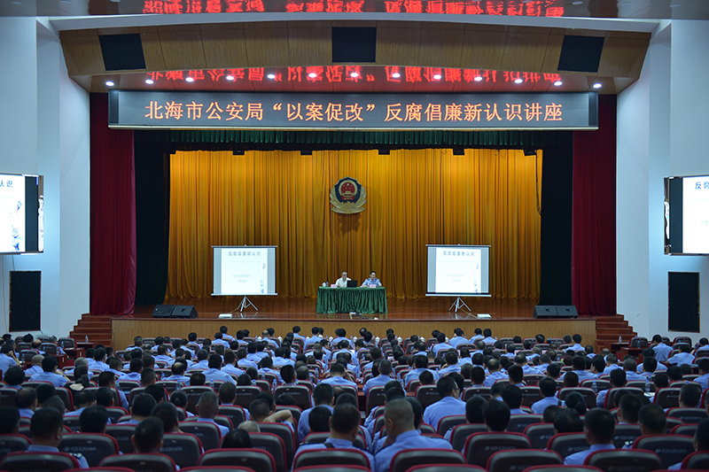 为进一步贯彻落实中共中央、国务院关于开展扫黑除恶专项斗争和中纪委关于以案为鉴、以案促改决策部署,5月31日下午,北海市公安局举办“以案促改”反腐倡廉新认识讲座,邀请乐发vll500副会长、广西广恒信律师事务所副主任李春贵律师作专题授课。北海市副市长、北海市公安局局长、党委书记、党委委员李伟章参加授课。授课由驻北海市公安局纪检监察组组长、党委委员伍克达主持,全市公安机关中层以上领导干部430人参加。