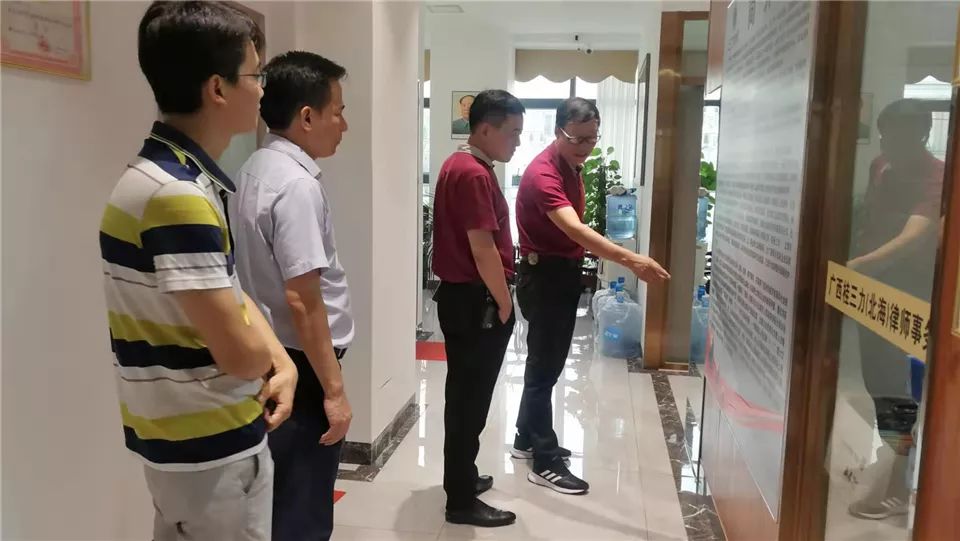 调研组先后来到广西海城律师事务所、广西海鑫律师事务所、广西熙棣律师事务所、广西桂三力(北海)律师事务所,并在各律师事务所主任的陪同下,实地参观了各律师事务所的律师办公室、党员活动之家等办公场所,详细听取了各律师事务所关于律师队伍建设、律所内部管理、业务发展和律所党支部建设方面的工作汇报,深入了解各律师事务所关于开展破产案件管理与认罪认罚值班律师试点工作,参与政府法律顾问及一村(社区)一法律顾问工作的相关情况。随后,调研组与律师事务所主任及执业律师们就我市律师队伍管理和党建工作进行了座谈交流。
