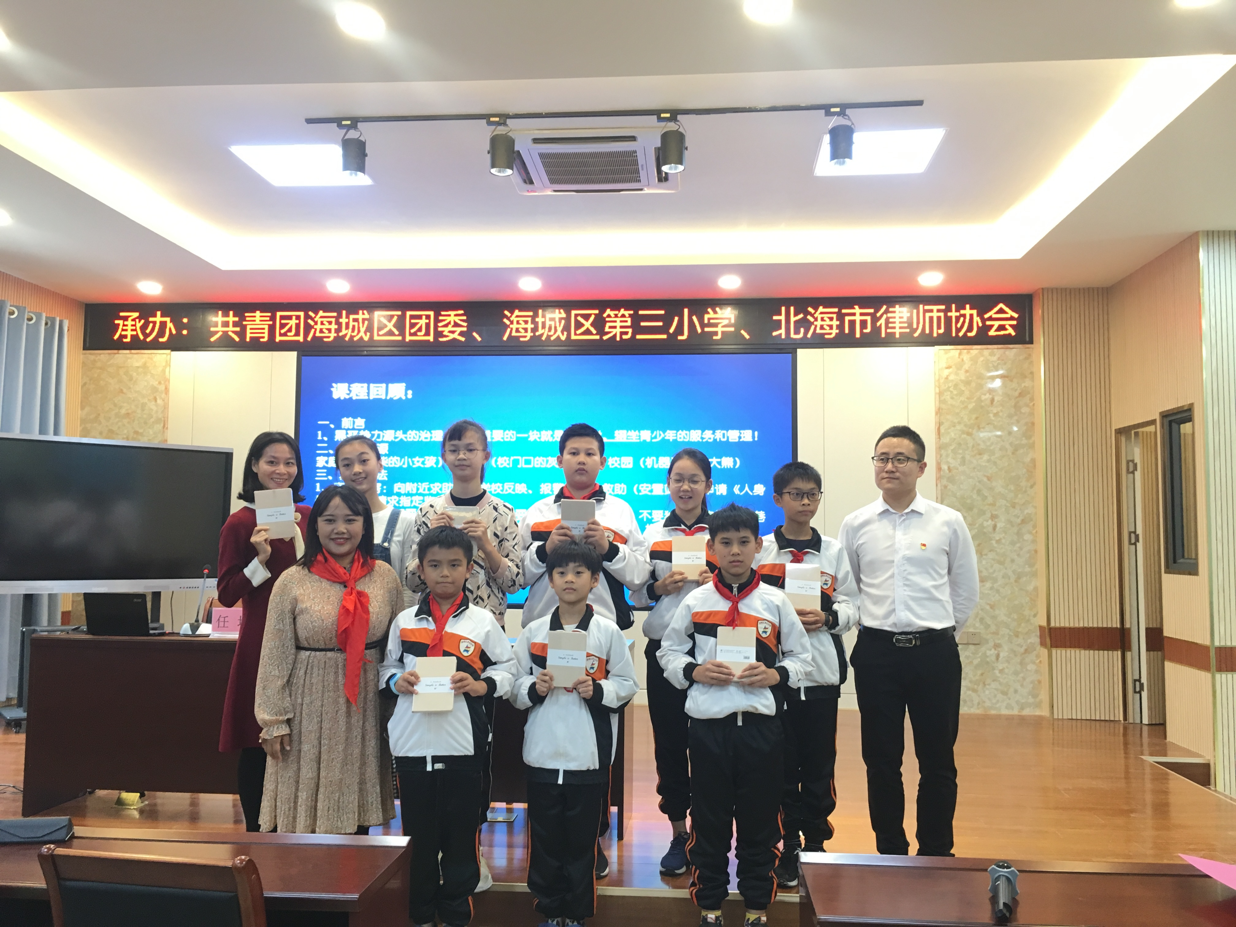 2019年10月30下午,共青团北海市委员会联合北海市司法局、乐发vll500、海城区团委于北海市海城区第三小学举办扫黑除恶进校园 护航青春助成长——“12355青春自护”系列宣教活动。乐发vll500未成年人保护专业委员会委员受邀参加,广西万益(北海)律师事务所律师任坤以“扫黑除恶,青春自护”为主题授课。北海市海城区第三小学160余名师生参加此次活动。